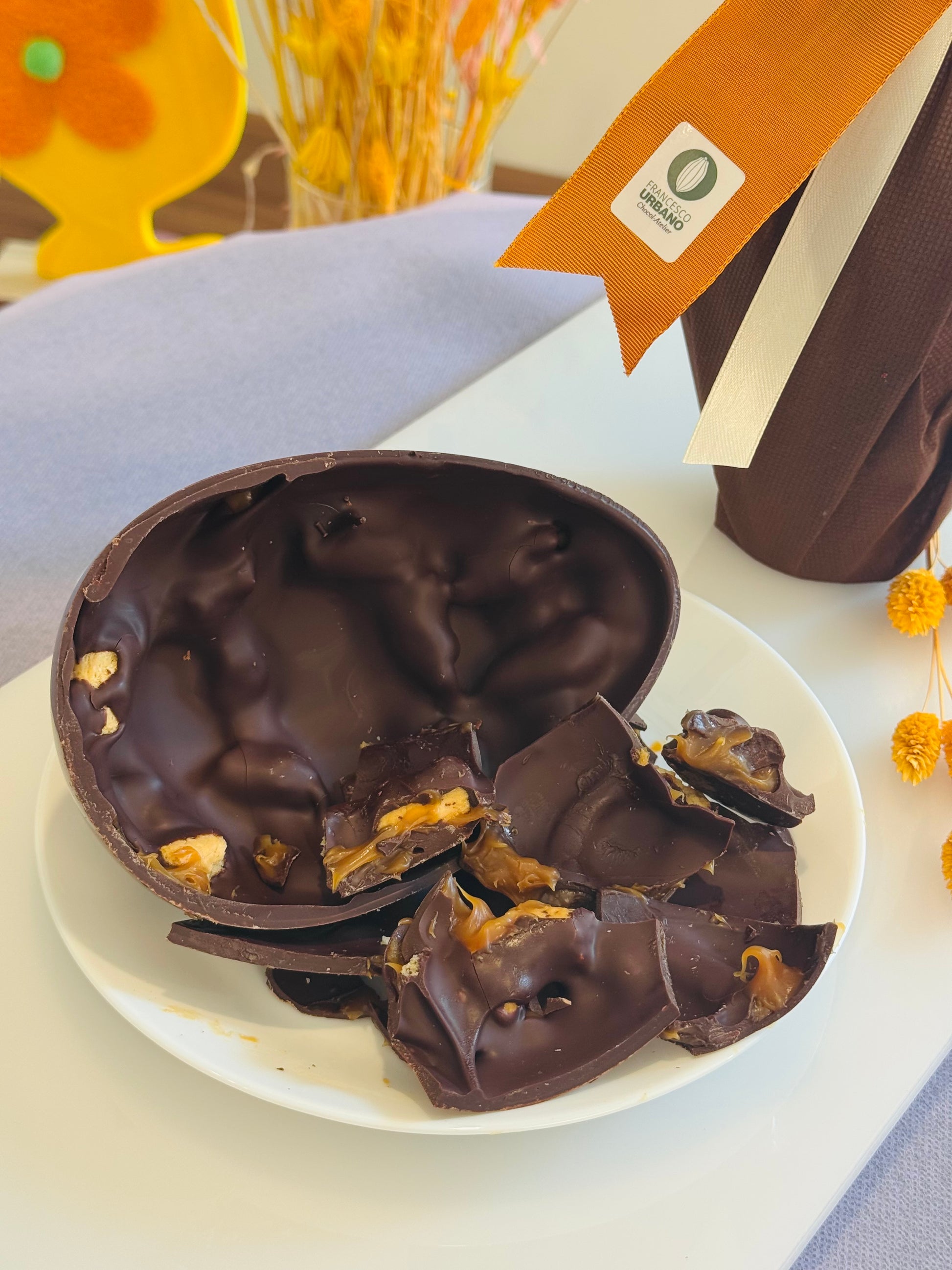 La super novità dell’anno 2026, all’immancabile Uovo dei Pugliesi al cioccolato fondente e tarallo abbiamo aggiunto del caramello salato filante! Al gusto e sonorità crunchy si unisce la cremosità filante del caramello salato! Nell’insieme una bomba per gli occhi e palato!